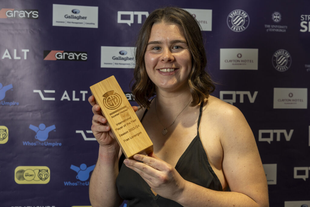 Fran was also honoured as being voted International Player of the Year at the Scottish Hockey awards – shortlisted by players and voted for by the public. She said, “It was an honour to be nominated because it was my teammates that did it. That meant a lot to me. I’m told I bring a vibe to the team and training so that’s probably part of why they did it. Then to win was truly unbelievable. It was lovely to be recognised. I’m a team player who did my best for the team, and it’s so nice to be honoured for that.”